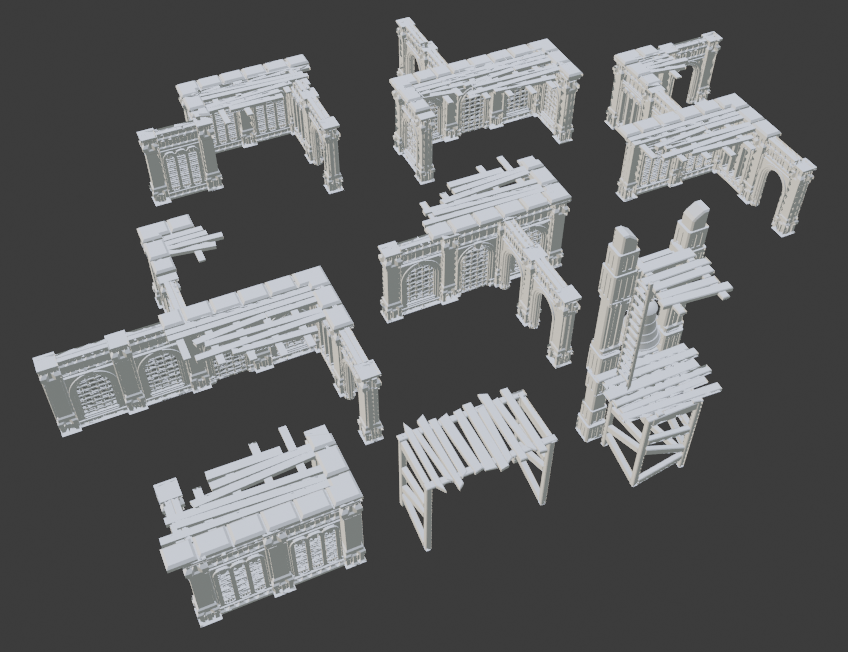 Updated 12/10/23: Did a significant overhaul. V2 of several parts, renaming to match future models, updated instructions, and added ruin bundle 3mfs for easier printing.